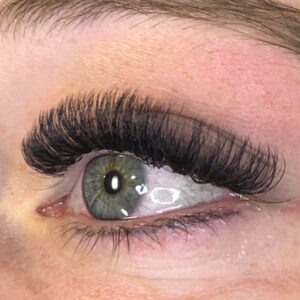 Bij de mega volume wimpers plaatsen we 6 tot 12 wimpers op de natuurlijke haartjes. De haartjes die we hier voor gebruiken zijn heel dun (0.04). Je creëert een fluffy en vol effect!